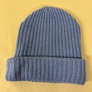 Cozy light blue knit beanie with brand label. Ideal for everyday wear. Twin Cities.