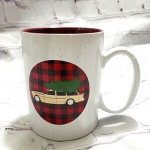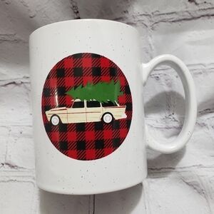 Love Your Mug Christmas Coffee Mug Marbled White Buffalo Plaid Car Carrying Tree.