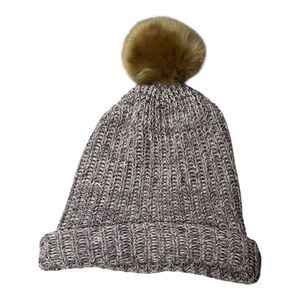 Love Your Melon Maroon/White Knit Fur Removable Pom Pom Beanie Hat.