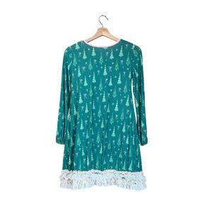 Love and Grow Girl's Green Tree Ruffle Pajama 12Y Night Gown Christmas