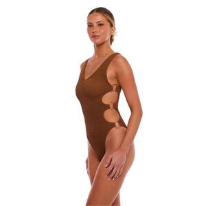 Love and Bikinis Women’s Chocolate Brown Smocked Dubai Multi Ring Cut Out OS Swimsuit