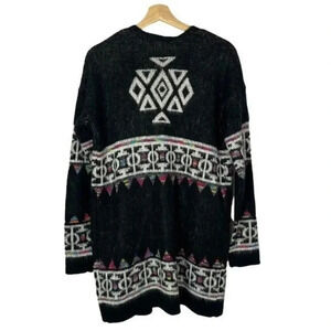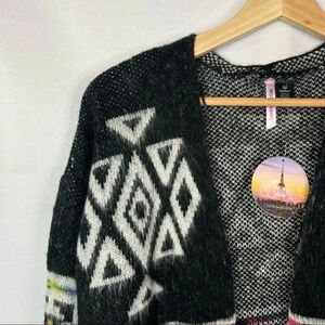 Love by Design Black Aztec Print Fuzzy Knit Cardigan Sweater M