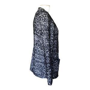 Love by Design Fuzy Sweater Black White Polyester Long Sleeve Cardigan Womens XS