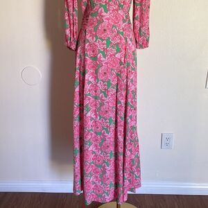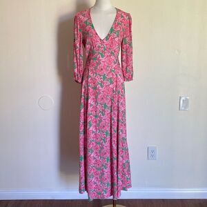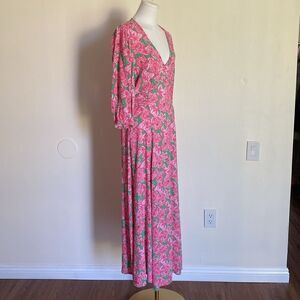 Love by Design Green & Pink Sun Benito Crepe Maxi Dress Size Medium