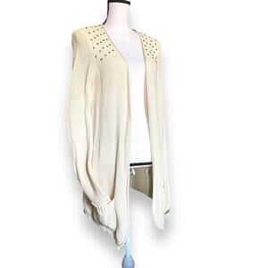Love by Design Stud Embellished Longline Cardigan Sweater Fits Sz M Cream Y2k