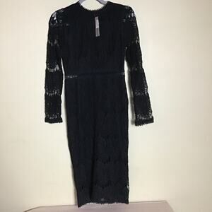 Love by Design Women’s Lace Long Sleeve Midi Black Dress Sz. Small NWT