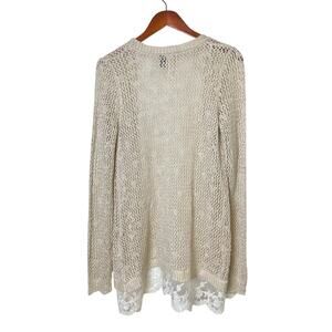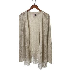Love by Design Women's Oatmeal Open Weave Cardigan Lace Hem Size Medium