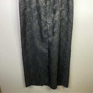 Love by Theia Sweetheart Neckline Gown in black. Crafted from luxurious jacquard fabric, this sleeveless gown features a sweetheart neckline and a ruffle front detail. A front slit , while hidden back zipper and hook-and-eye closure ensure a seamless fit. Fully lined, this gown is a sophisticated choice for any formal occasion.