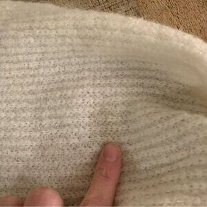 There is a spot on the neck area and on the cuff of the sleeves have marks see images for reference.