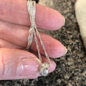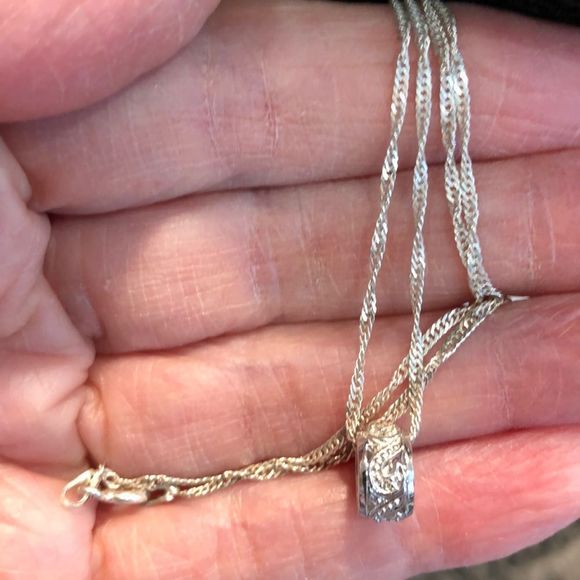New with tags 17 inch twisted 926 chain that’s the look at the chain that has these little twist on it and the circle has little CZ chips in them and there are 926 as well it’s so spectacular it looks like there’s a diamond hanging from your neck and a small little circle it’s the circle of love endless forever