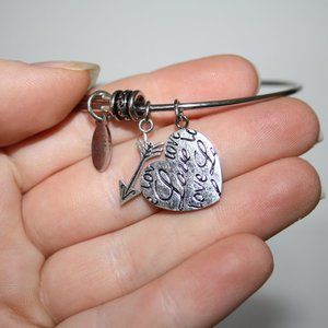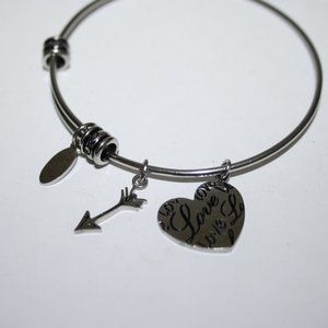This is a beautiful silver tone charm bracelet with a LOVE heart and arrow charm. The bracelet is in great condition. It fits my 7" wrist great.