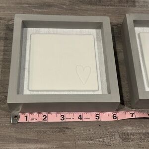 New set (total of 2 in box) “Love in Every Corner" wall art. Stunning ceramic heart in beech wood frame.