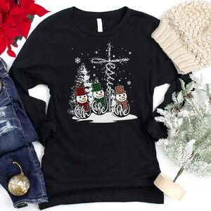 Love in Faith “Faith Hope Love” Snowmen Long Sleeve, size M, in black