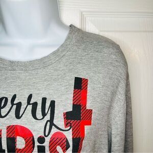 Love in Faith Merry Christmas Truck Long Sleeve Tshirt Marled Grey Size Small. Christmas truck themed Christian Tee. Emphasis on Christ in Christmas. Long sleeves. Bright red and black Buffalo plaid graphic print. Inspired by 1930 advertisement by American illustrator Peter Helck. The truck in the ad was a Ford Model AA flatbed. Gently used Excellent preowned Condition.