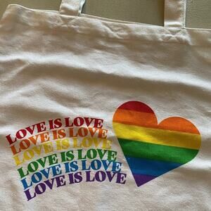 Love is Love Rainbow Tote Bag White 15” Pride Canvas