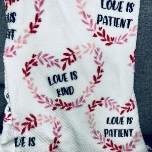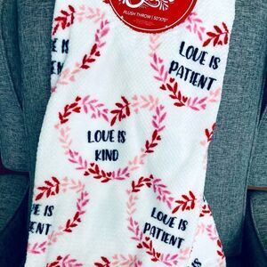 NWT “Love is Patient, Love is Kind” white red and pink floral botanical wreath hearts print plush jacquard throw blanket. Very soft and cozy. 50”x70”