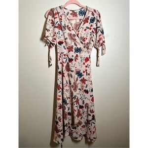 Love j Floral Beige and Red Wrap Dress Size Medium