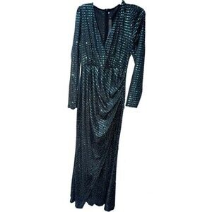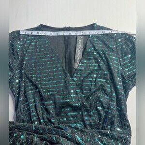 Love & lemonade dark green dress curve Deep V neck wrap sequin long sleeves 1XL