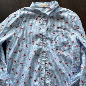 Love notes button down cherry shirt, size S. Sleeves can be worn fill length or 3/4, there is adjustable button inside sleeves. No trades. Bundle with other items for a deal.