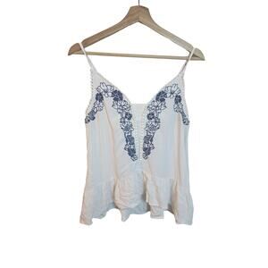 Love on a Hanger Blue & White Embroidered Boho Beachy Stappy Top Sz M