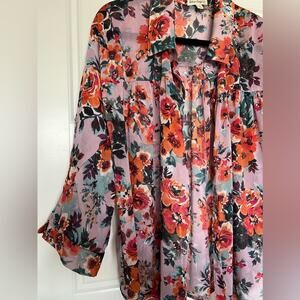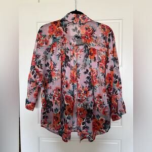 Love on a Hanger women’s size XL red blue floral button blouse/shirt