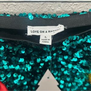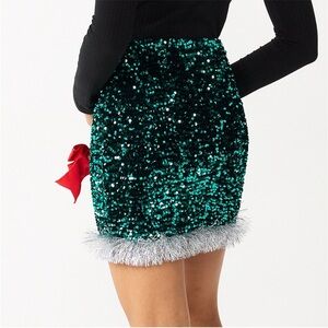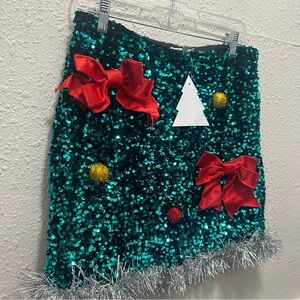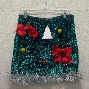 Love on a hanger Women's Christmas Teal Sequin Decorated Mini Skirt NEW L