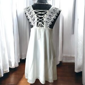 Love riche lace crochet mini Slip dress size S White Laceup Butterfly Whimsical