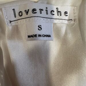 This Loveriche lace mini slip dress in size S features a V-neckline and a lace-up closure at the back, adding a whimsical touch with butterfly accents. Made of chiffon fabric with crochet, lined, and layered details, this sleeveless dress is perfect for summer parties, casual outings, or even while traveling. The white color and floral pattern give it a boho-chic vibe, ideal for those who love a hippie or beach-inspired style.