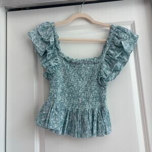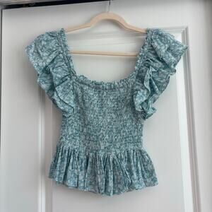 Love the Label Anthropologie Smocked Ruffle Flutter Sleeve Crop Top Tank Sz S