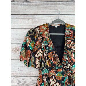 Item: Love the Label Anthropologie Southwest Ruffled Mini Wrap Dress Women's XS Black