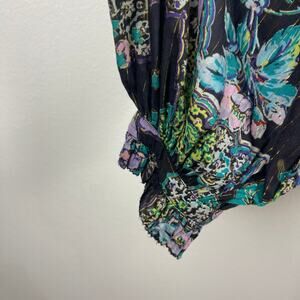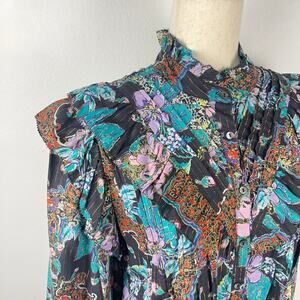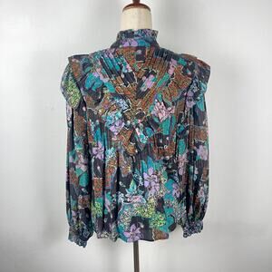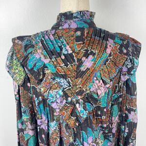 Love the Label Floral Print Metallic Long Sleeve Mock Neck Button Blouse Small