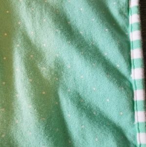 Summer lite thin material to keep cool. Ice Green with white polka dots. Recommended for 3-6 months or 13-18.5 lbs.