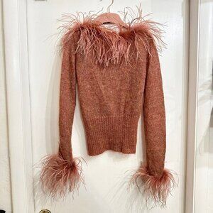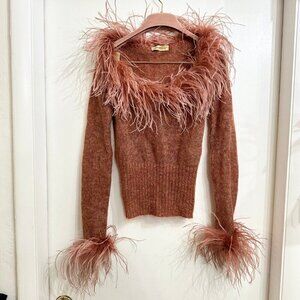 Love to Love Italian Y2K style 90s mohair sweater with ostrich feather trim
