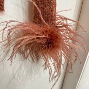 Love to Love Lorel Miss made in Italy mohair blend long sleeve knit sweater with scoop neckline trimmed with luxurious thick ostrich feathers, ribbed waistline