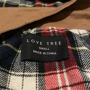 Brown love tree jacket with buttons and flannel lining. Worn once
