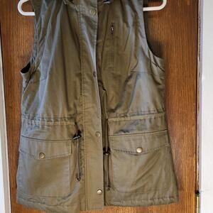 Love tree women's Khaki/green fullzipper/snap removable hood vest lined Small