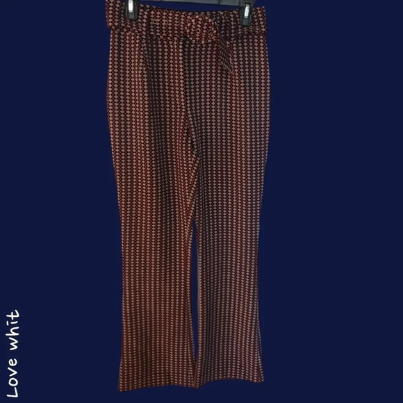 Love whit rent the runway pre loved a geo print puts a retro inspired spin on these love pants cut with a kicky flare and belted waisted button zipper size 2 is like new smoke and pet free home.0316