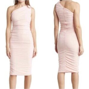 Love x Design One Shoulder Ruched Pink Midi Dress Size Medium