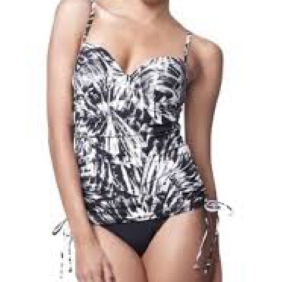 Love your Assets by Spanx tankini top push up swimsuit black & white size small