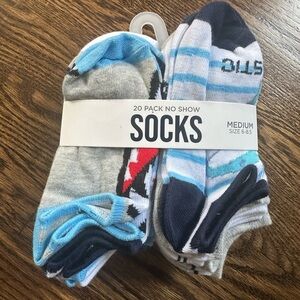 Love2Design Boys 20-Pack No-Show Socks Sharks Camo Stripes Size Medium (6–8.5)