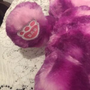 This delightful stuffed animal features a vibrant blend of purple and pink, offering a plush and fuzzy texture perfect for cuddling. Its classic teddy bear design, complete with rounded ears and a charming pink nose, makes it a timeless addition to any collection. Ideal for those who cherish the enduring appeal of plush toys.