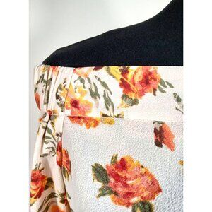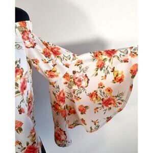 "Love J" Long Sleeve Blouse is a sexy, off-the-shoulder top in ivory with a multi-color design. Perfect for women who want to make a statement. Small size with a minor, barely noticeable stain.