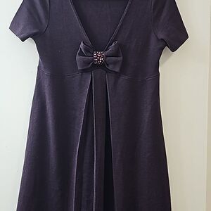V Neck, Pull over with Embellished Bow. Color is hard to capture. 1st photo was borrowed but the tight color. Dress is great used Condition not NWT as the first Picture has a tag.