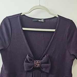 Love Moshino Wool Blend Purple A Line Dress with Bow Size 8