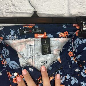 Love Nation Blue and orange floral print jeans Pants Inseam length 30” Front and back pockets Zip and button closure In like new condition