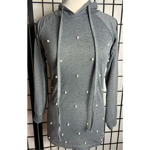 Love Nation Gray Pearl Adorned Hooded Top