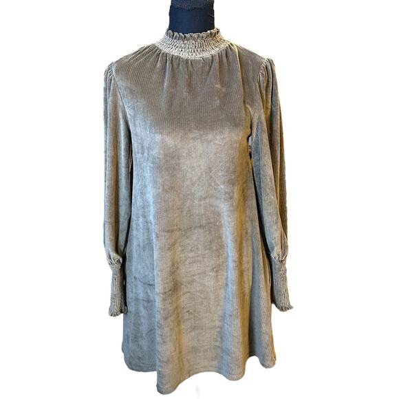 LoveRiche Tan Velvet Mock Neck Puff Sleeve Ribbed Mini Dress Size S
