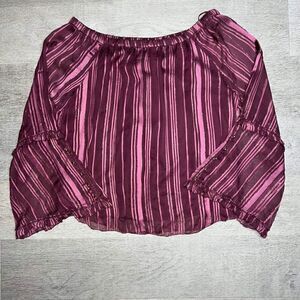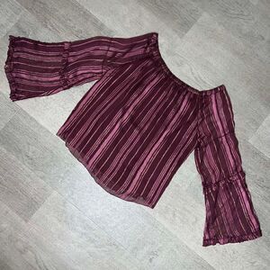 Love Sam, Metallic Striped Off-The-Shoulder Sheer Long Sleeves, Women’s X-Small