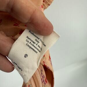 Romantic and feminine LoveShackFancy 100% silk cropped blouse in a soft blush-peach hue with delicate tiny floral print. Features a flattering sweetheart neckline, ruched puff sleeves, and a smocked elastic neckline and hem for a dreamy, cottagecore silhouette. Lightweight silk drapes beautifully for an effortlessly romantic look — perfect with high-rise jeans or a floaty skirt.