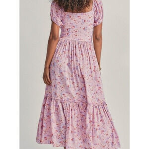 LoveShackFancy 6 Angie $595 SILK Milkmaid Midi Dress Puff Shoulder Floral Pink